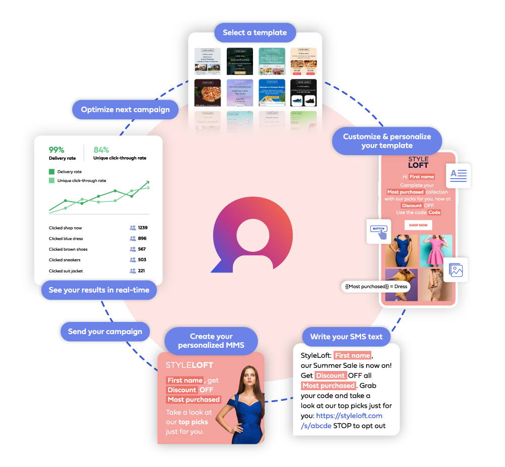 Craft SMS and MMS messages that resonate. Our unique feature, personalized MMS text overlay, adds a personal touch and captivates your audience, making every text more engaging.