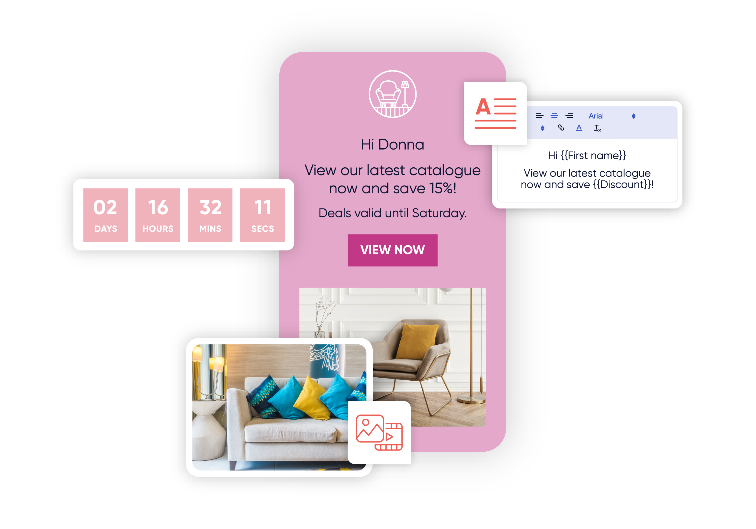 Use dynamic countdown timers, gifs and product catalogues to generate demand.